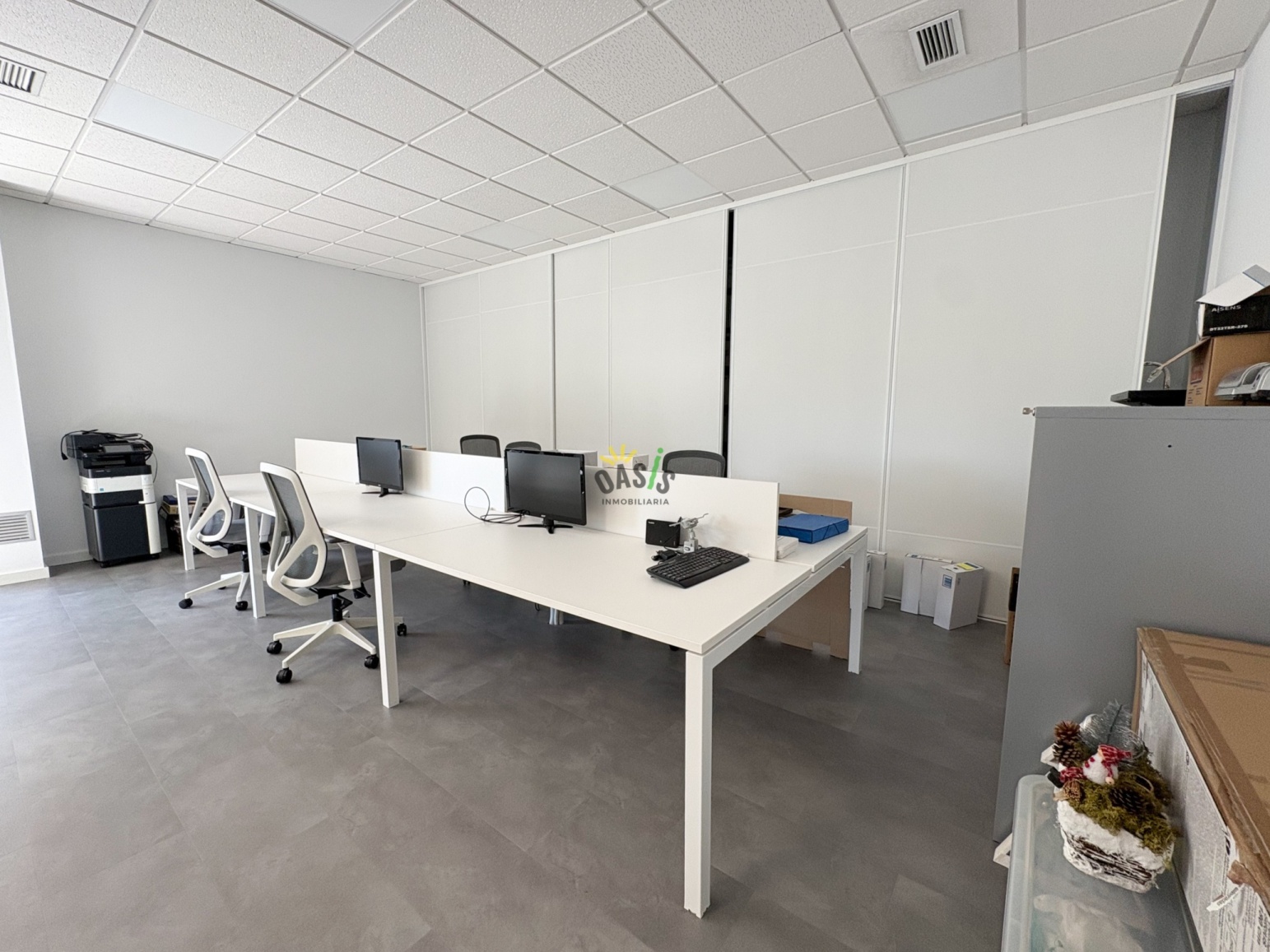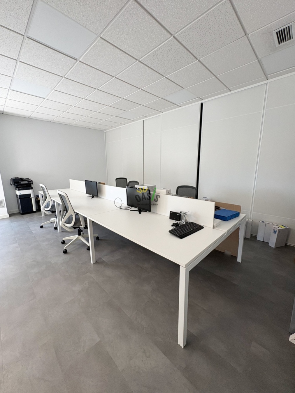 La oficina ha sido reformada íntegramente con un diseño moderno, amplio y funcional, ofreciendo todo lo necesario para un entorno laboral productivo y cómodo.