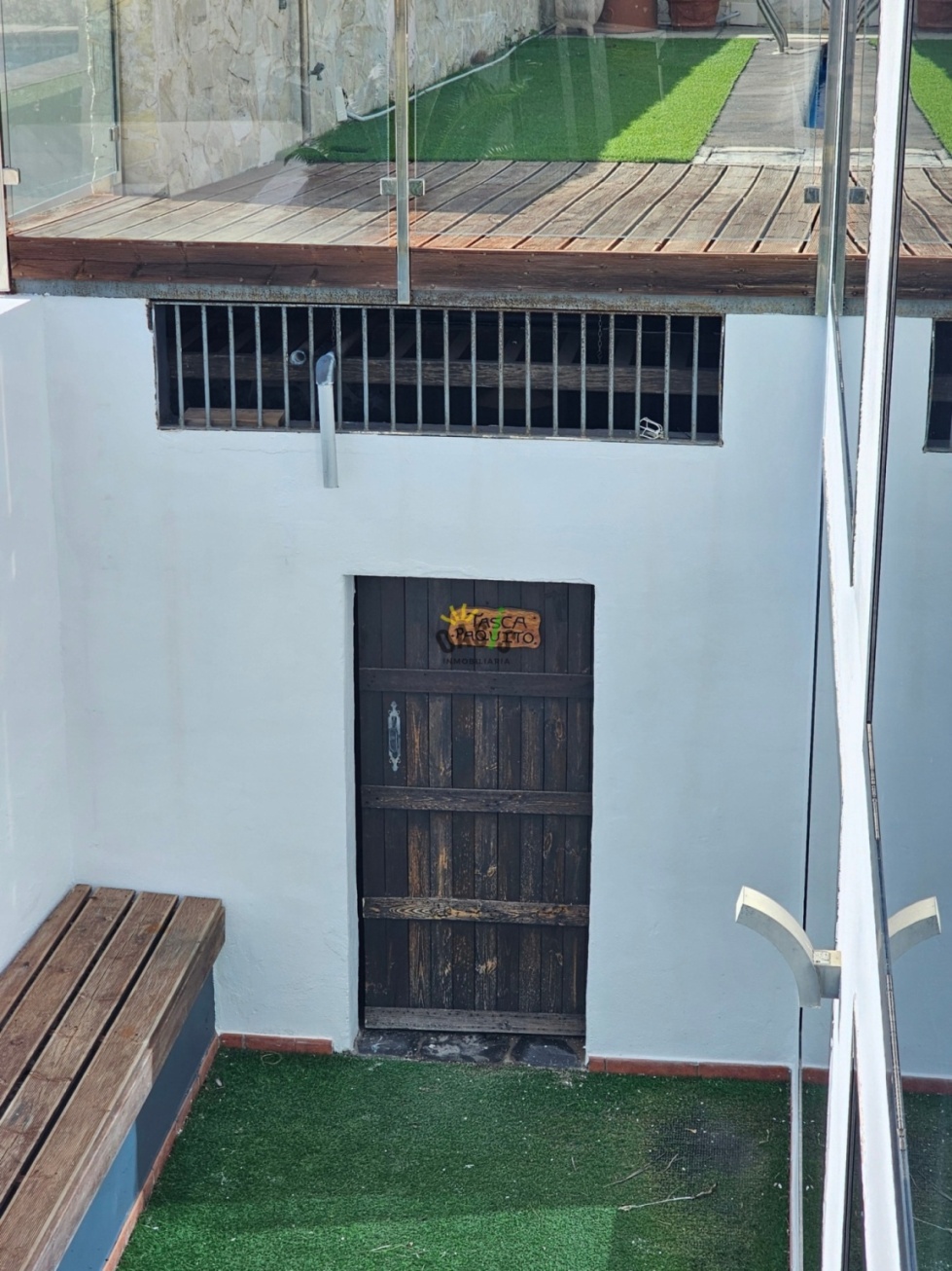 La Planta Baja donde nos encontramos con dos amplias salas y un dormitorio en suite, las salas esta conectadas al jardín delantero de la casa, actualmente las salas están destinadas en parte a zona de ocio y despacho. Saliendo al jardín en lado hay una pequeña bodega para guardar los vinos y en el otro lado una amplia sala cubierta de uso polivalente que cuenta con un aseo y acceso al exterior de la casa por la parte alta.