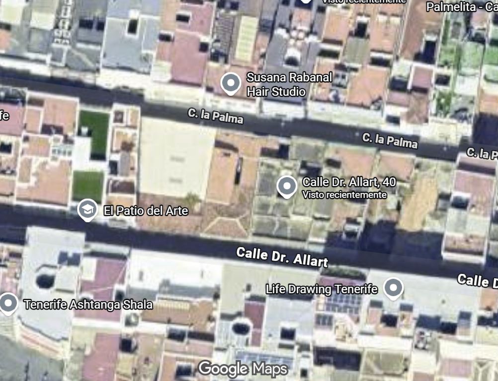 unos 8.5 metros y unos 14 m lineales por calle La Palma, distribuidos