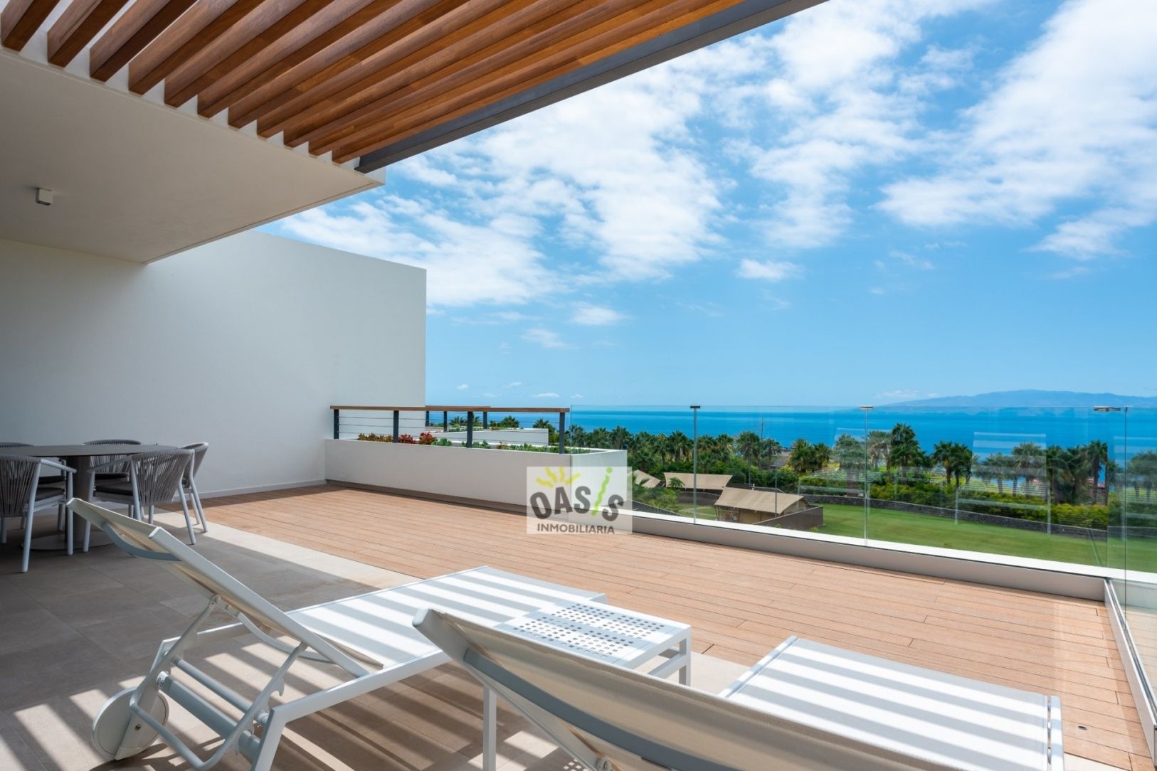 Lujoso apartamento en el sur de la isla de 136,55 m2 construidos más 37 m2 de jardín y una terraza de 50 m2 en un exclusivo complejo en el sur de la isla de Tenerife.