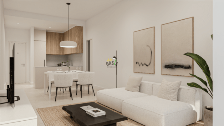 La cocina estará equipada con muebles altos y bajos de diseño actual y preparados para los espacios multifuncionales. El frente y la encimera serán de cuarzo compacto.