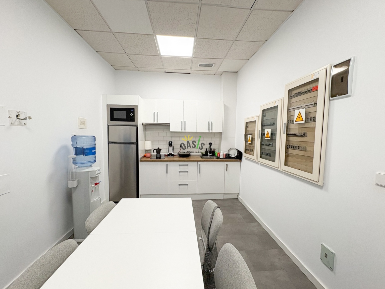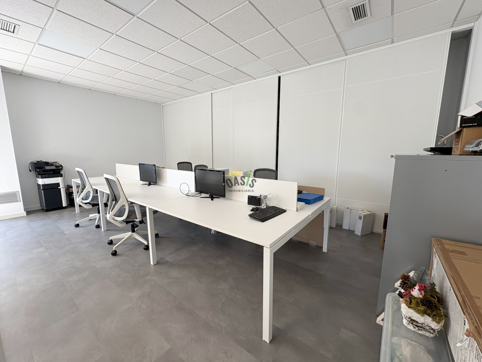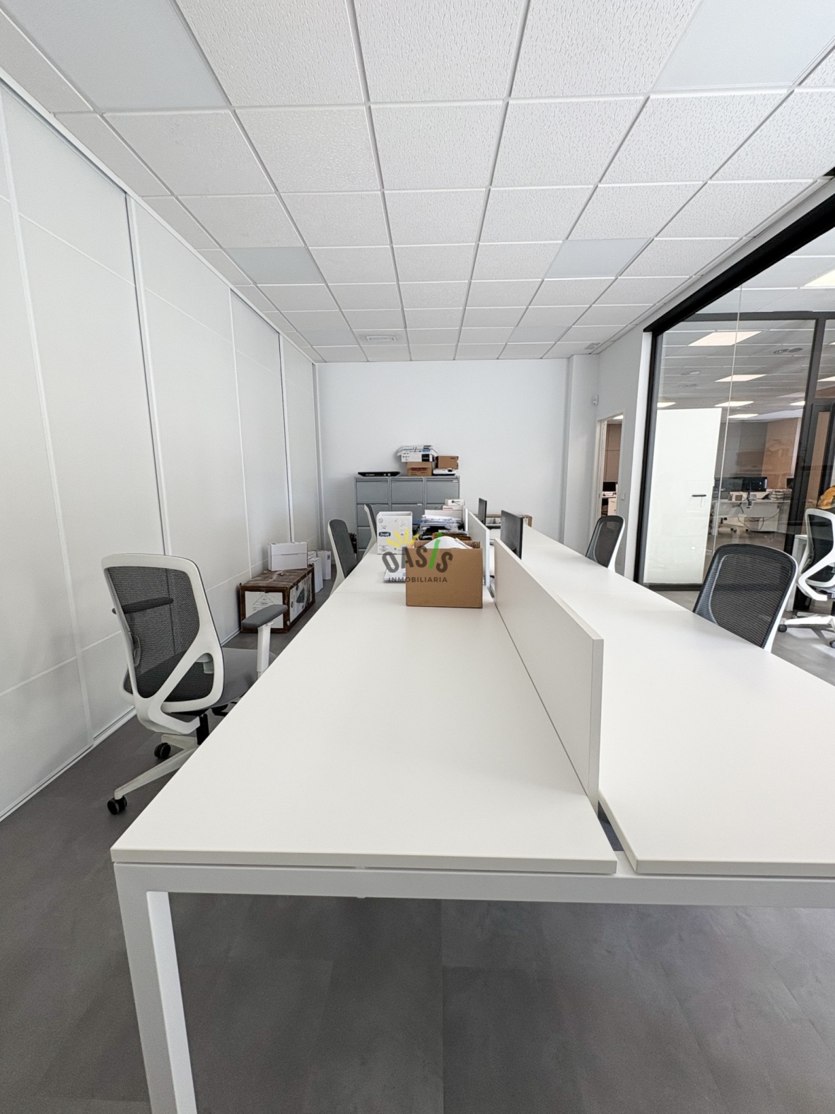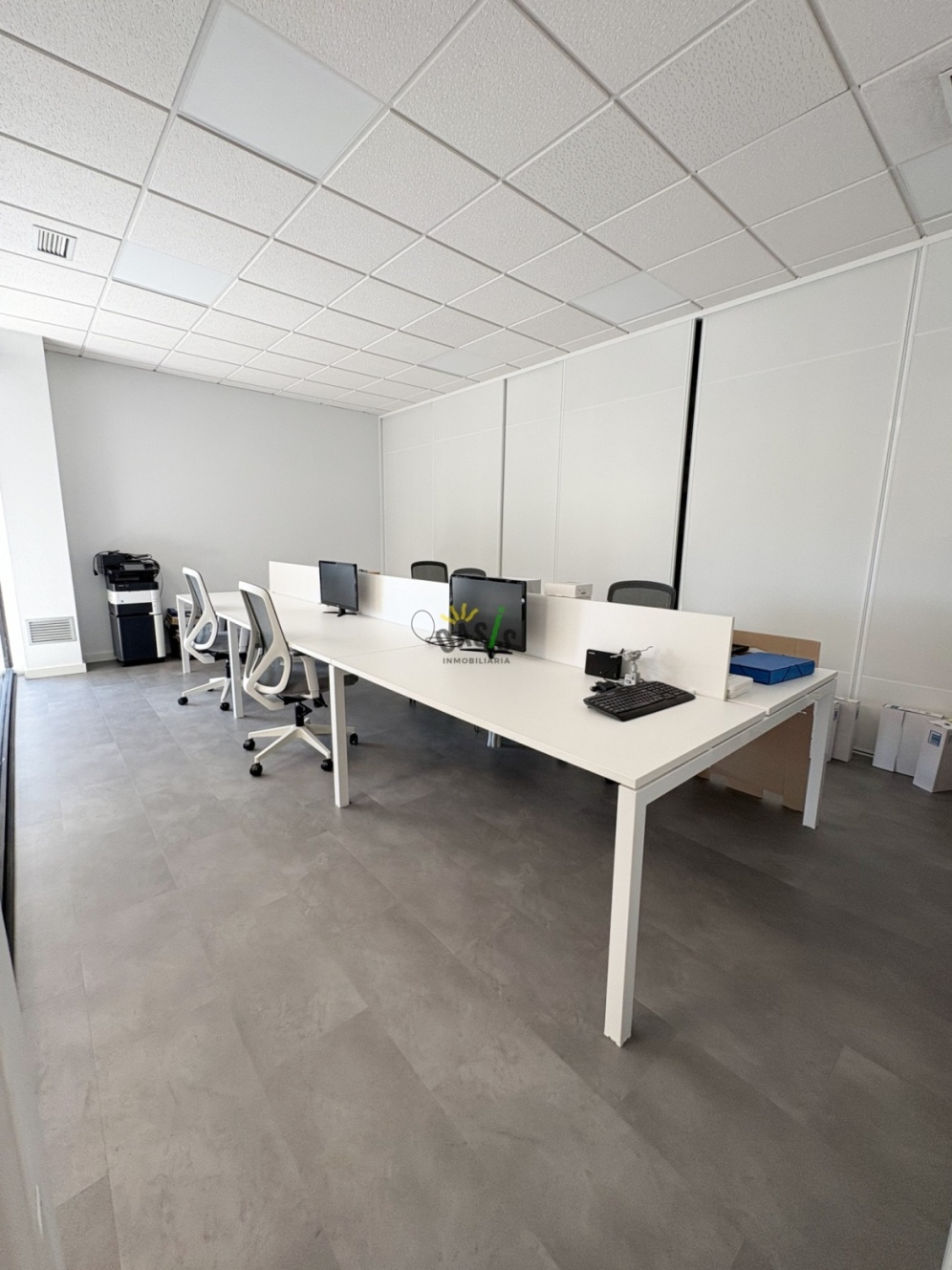 La oficina ha sido reformada íntegramente con un diseño moderno, amplio y funcional, ofreciendo todo lo necesario para un entorno laboral productivo y cómodo.